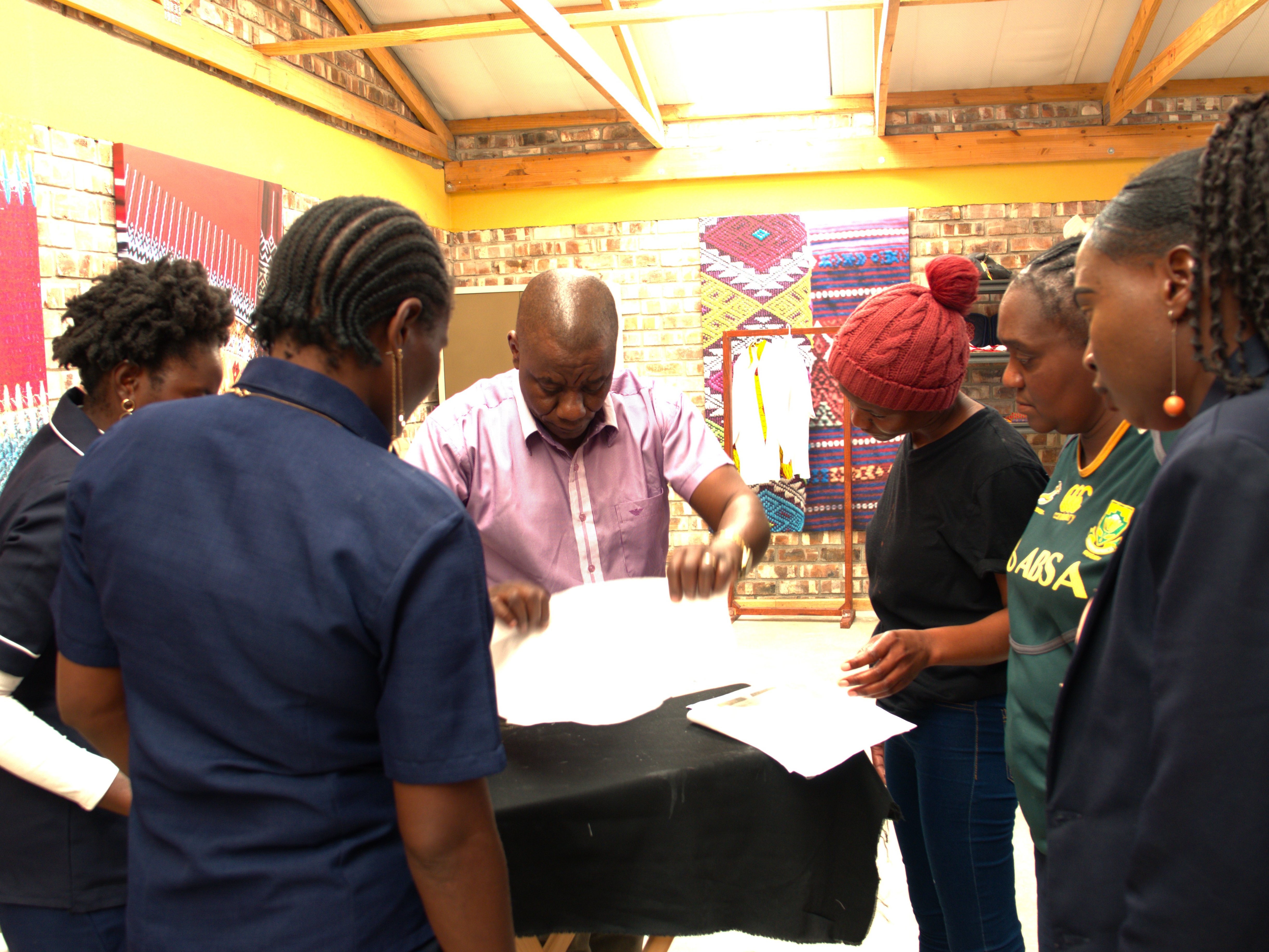 Kinder stellen Etuis für ihre Bleistifte selber her. Bald werde auch Frauen Taschen aus farbenfrohem Stoff für „Nathalias Family Kitchen“ herstellen.